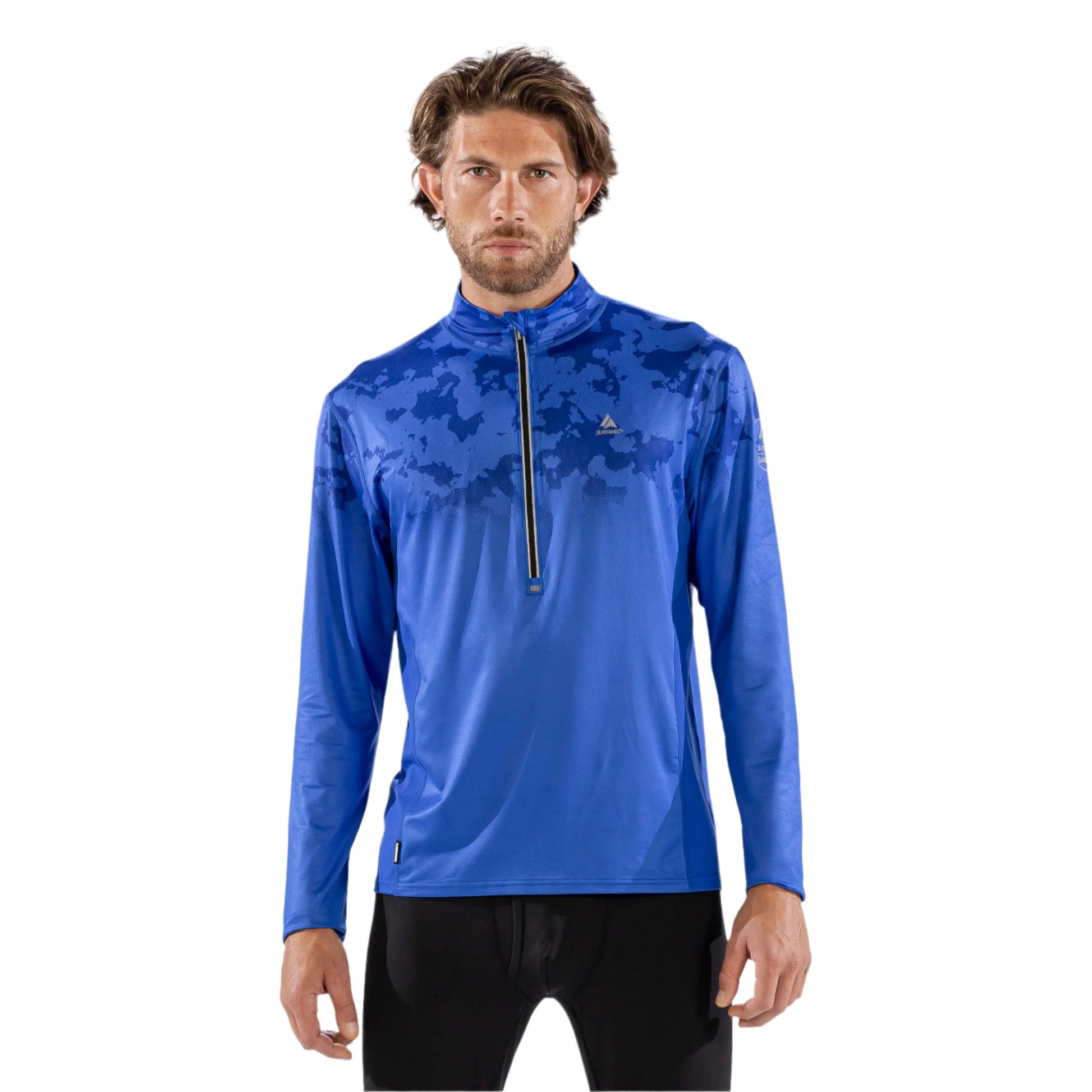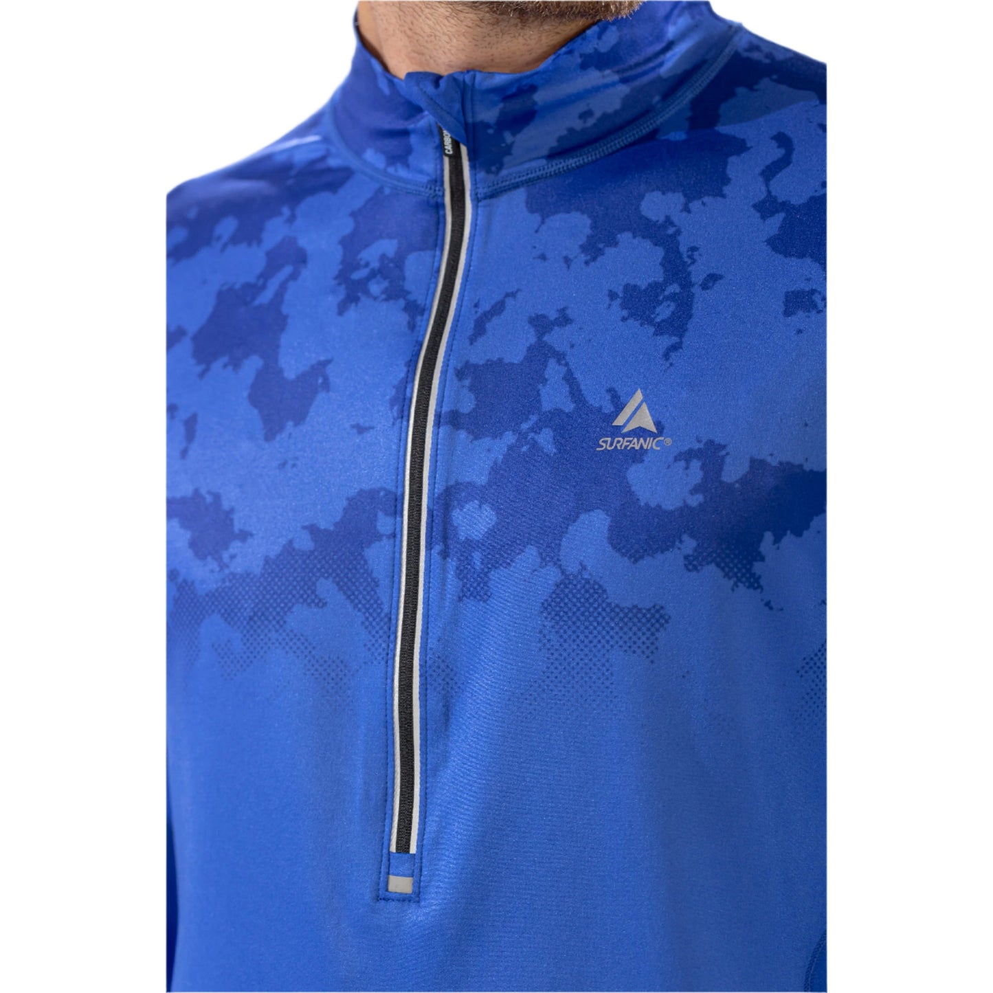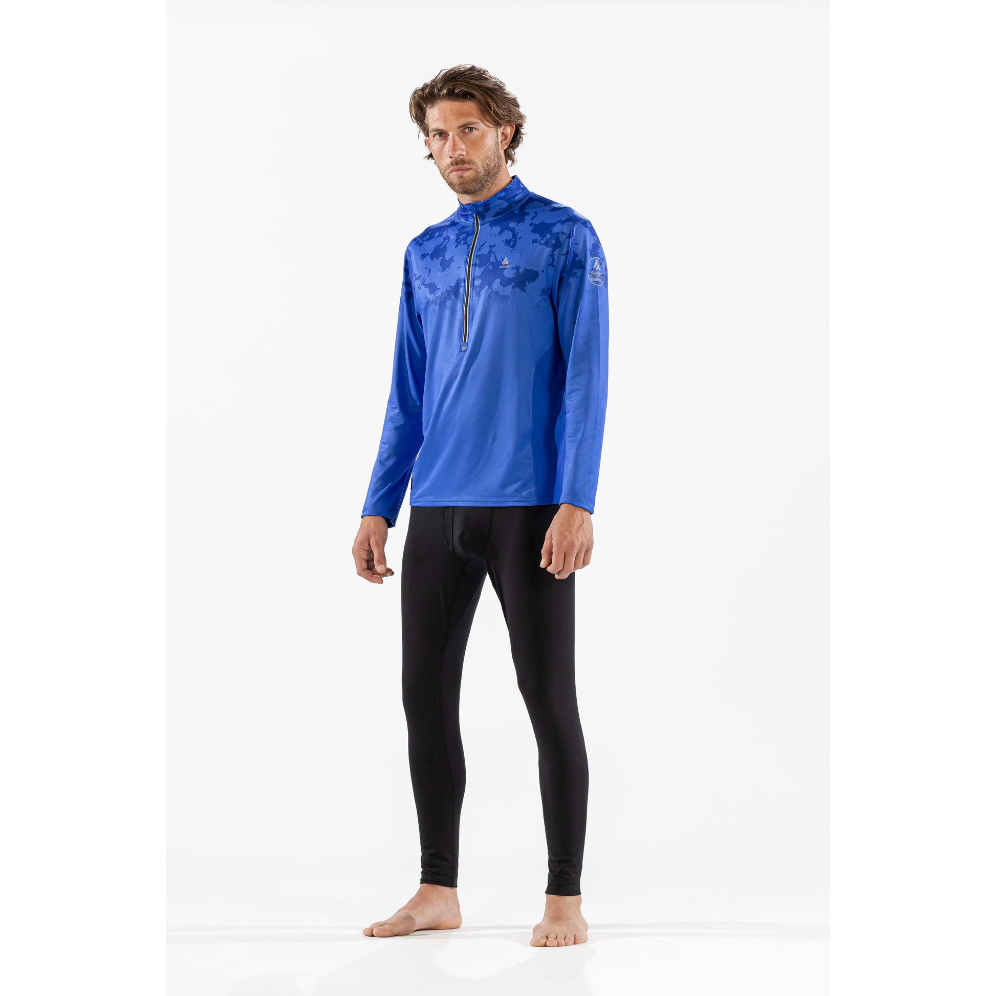Thermal Ski Top - Surfanic Bodyfit Zip Neck Men's Baselayer - Broken Map Brilliant Blue
