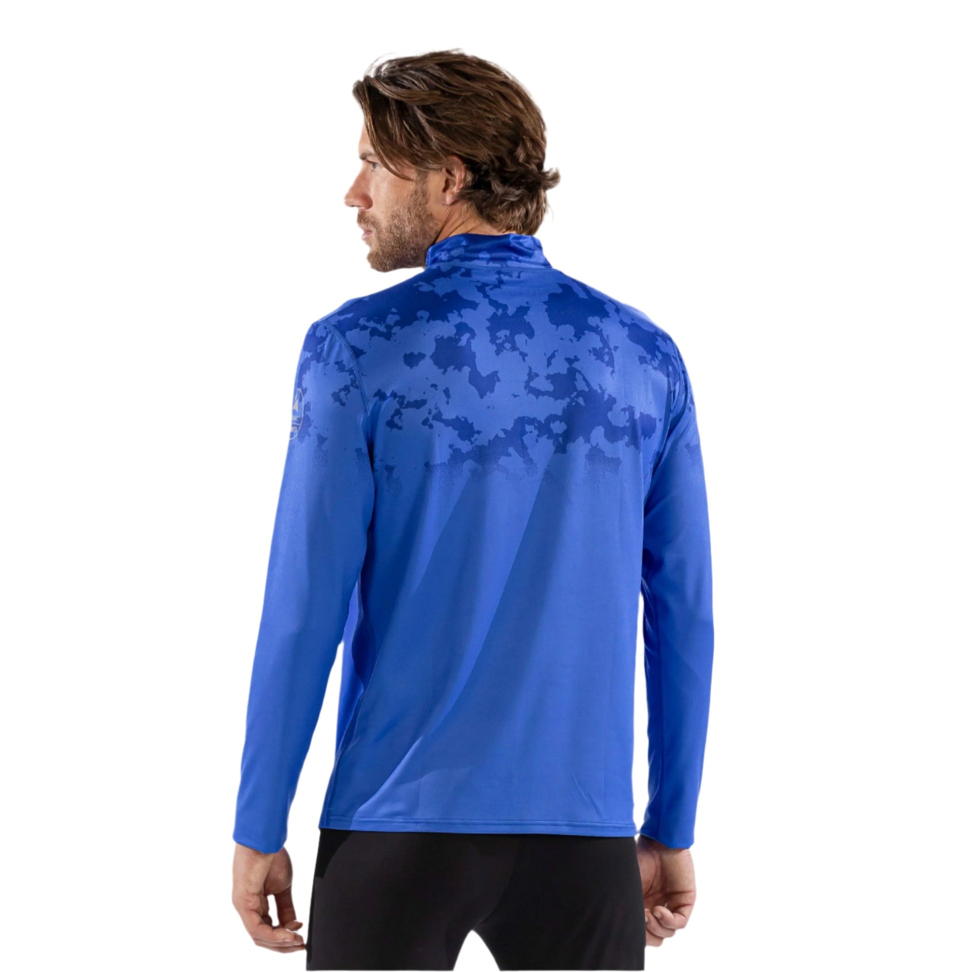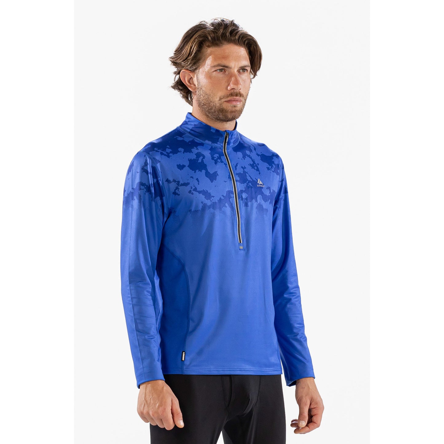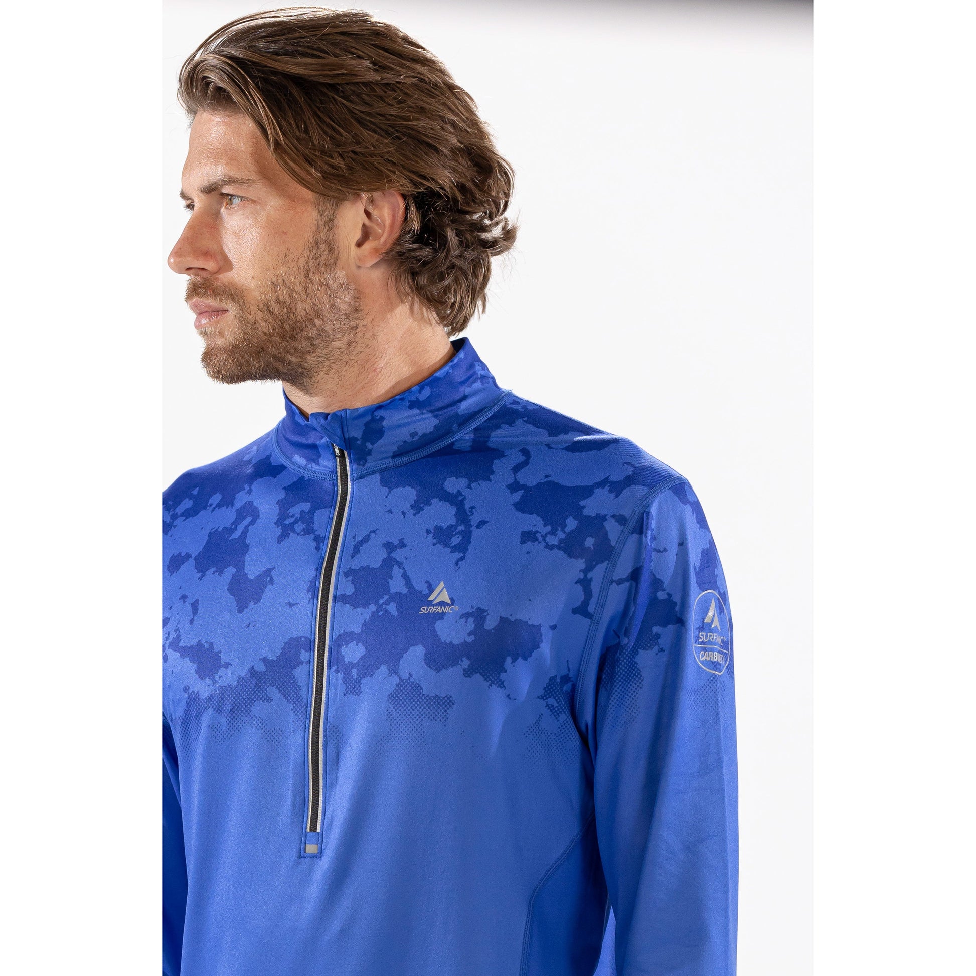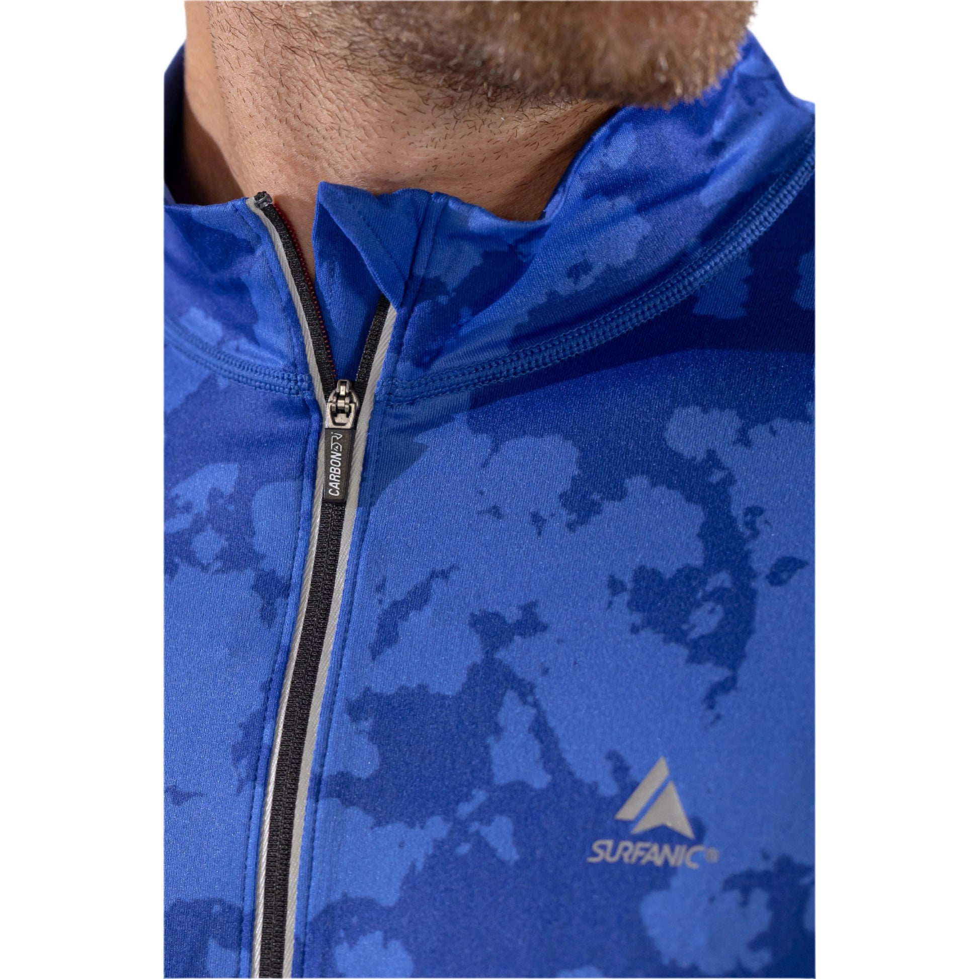 Thermal Ski Top - Surfanic Bodyfit Zip Neck Men's Baselayer - Broken Map Brilliant Blue
